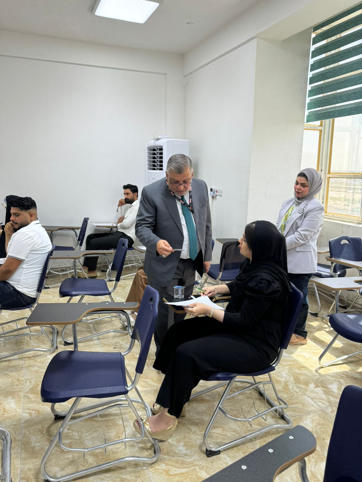رئيس مجلس إدارة كلية الكوت الجامعة يتفقد سير امتحانات الطلبة التي انطلقت اليوم.