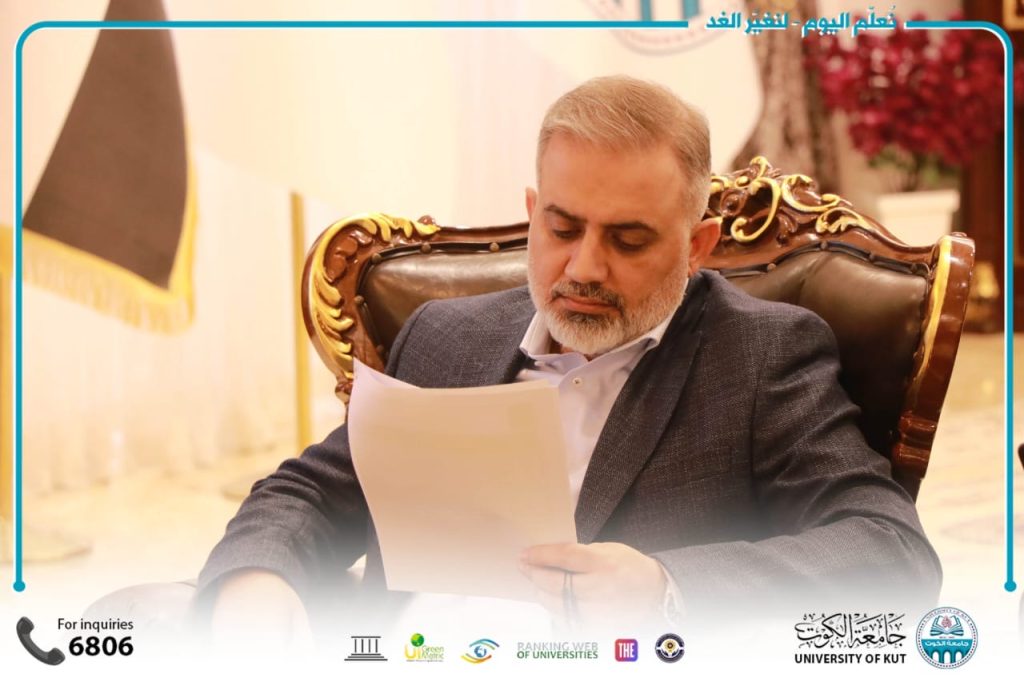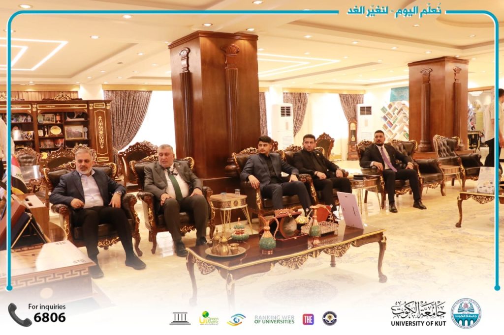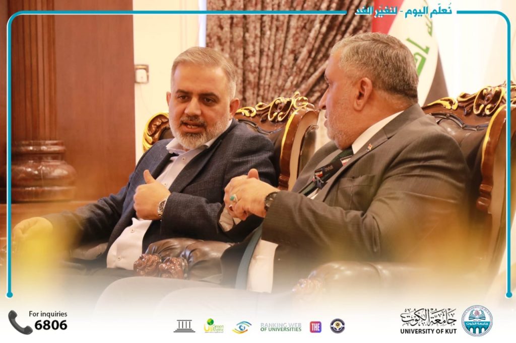 رئيس مجلس إدارة جامعة الكوت يستقبل في مكتبه عضو مجلس النواب العراقي الأستاذ يوسف الكلابي.
