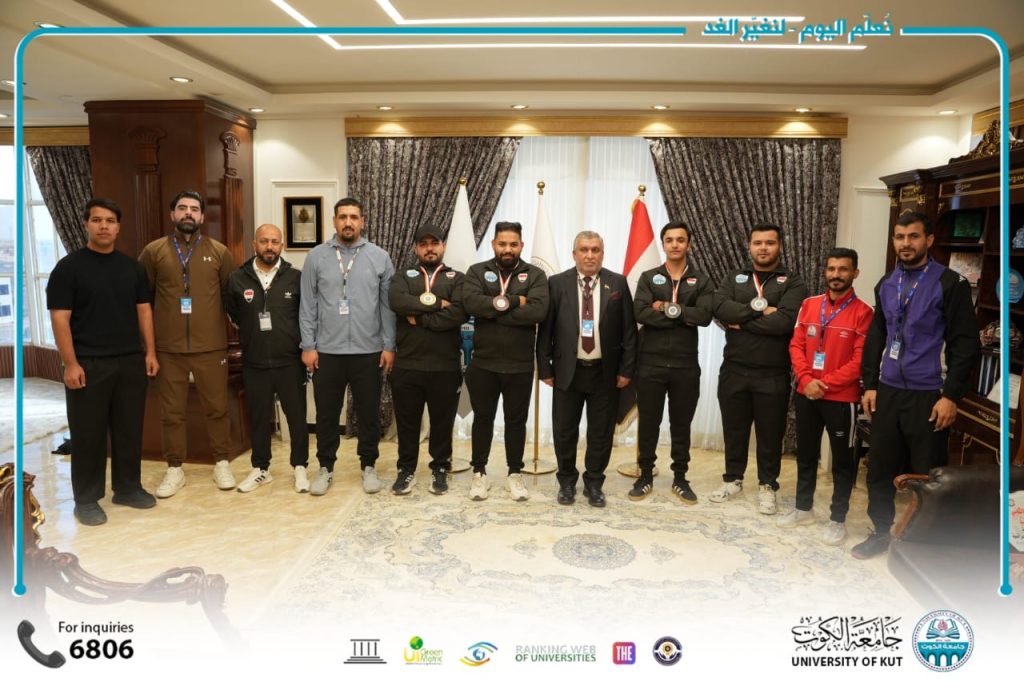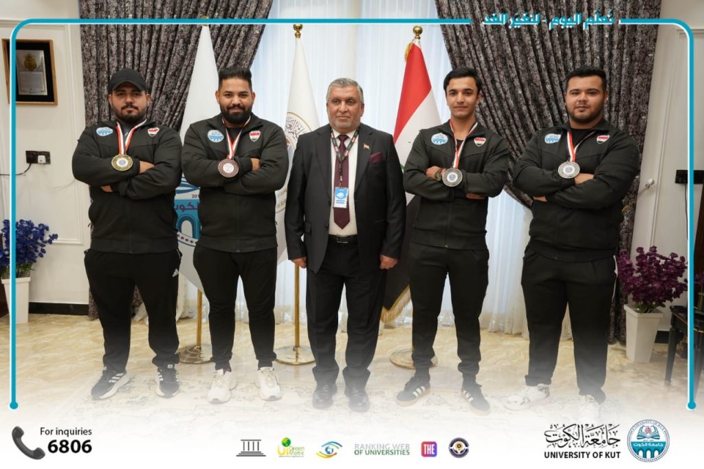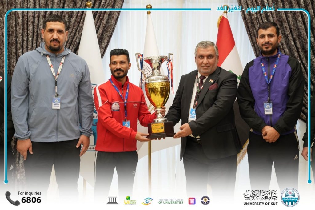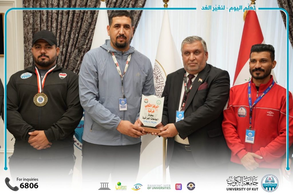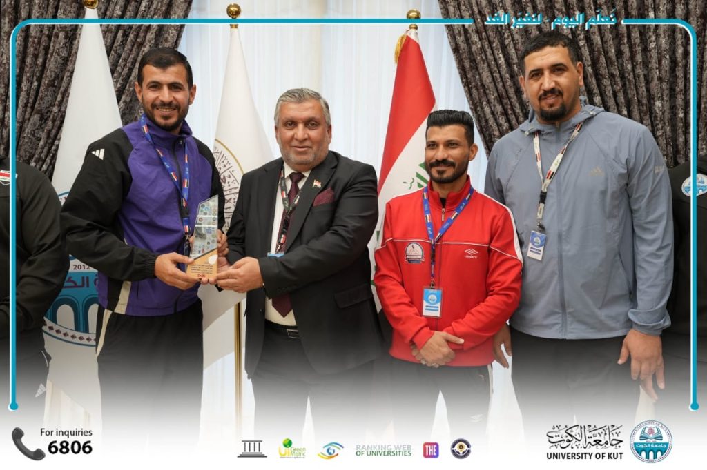 أهدى التدريسي في كلية التربية البدنية وعلوم الرياضة بجامعة الكوت م.م حيدر مهدي داخل درع التميّز إلى السيد رئيس مجلس إدارة الجامعة الأستاذ المساعد الدكتور طالب الموسوي، تقديراً لجهوده ودعمه للحركة الرياضية، وذلك بمناسبة حصوله على رخصة التدريب الدولي لكرة اليد مستوى (C) التي منحها له الاتحاد العراقي المركزي بعد اجتيازه الدورة التدريبية التي أُقيمت في محافظة البصرة.