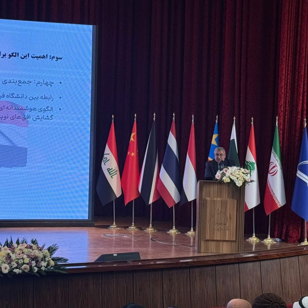 كما خُصّص جانب مهم من المحاضرة لعرض أنموذج التعاون الأكاديمي بين جامعة فردوسي في مشهد وجامعة الكوت في واسط، بوصفه تجربة عملية ناجحة للتكامل الأكاديمي الإقليمي، شملت التعاون البحثي، وبناء القدرات، وتدريب الكوادر، والتبادل الثقافي، فضلًا عن افتتاح مركز تعليم اللغة الفارسية لغير الناطقين بها في جامعة الكوت وفق مناهج معتمدة من جامعة فردوسي، بما يعزز التفاهم الحضاري والتواصل العلمي بين المؤسستين.